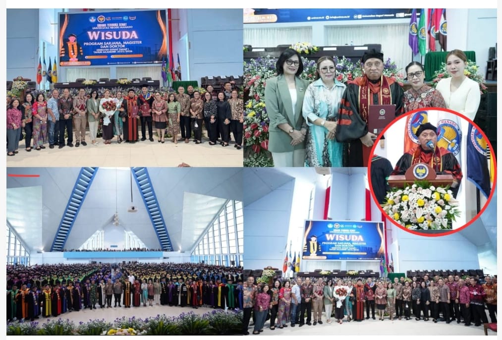 Prosesi akademik yang berlangsung khidmat ini digelar di Gedung Auditorium Maria Walanda Maramis, Universitas Negeri Manado (Unima), Kamis (26/3/2026).