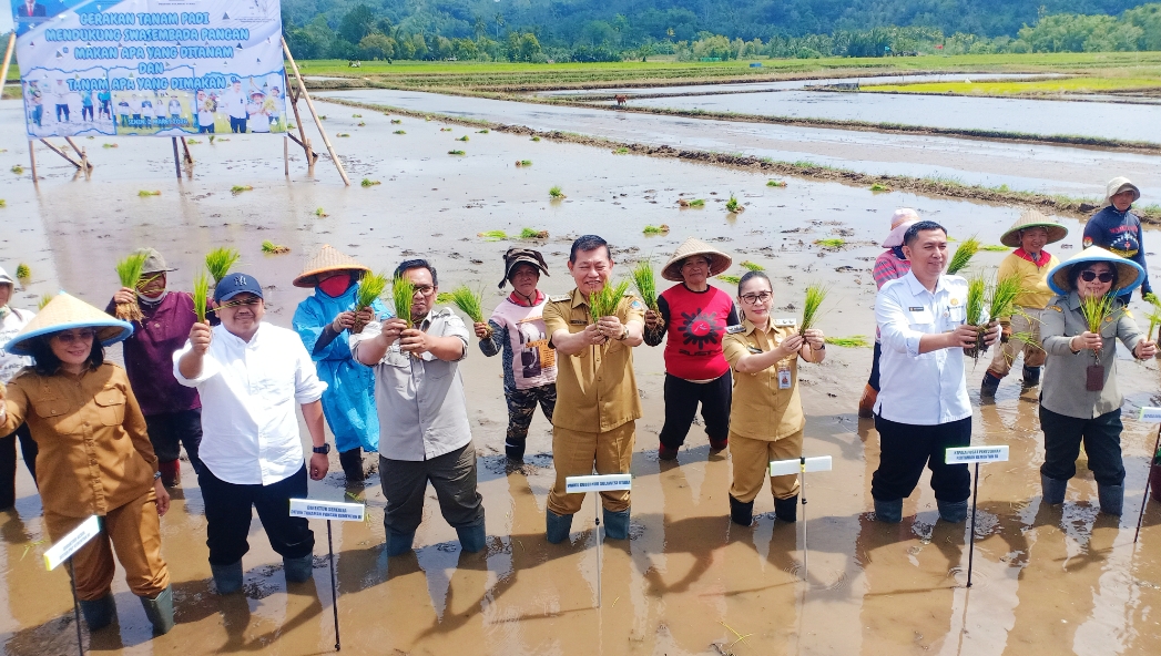“Hari ini merupakan kolaborasi yang luar biasa. Kita menanam padi bersama sebagai upaya melanjutkan ketahanan pangan yang telah dicapai. Ini bentuk sinergi pemerintah pusat dan daerah dengan semangat makan apa yang kita tanam dan menanam apa yang kita makan,” ungkapnya.