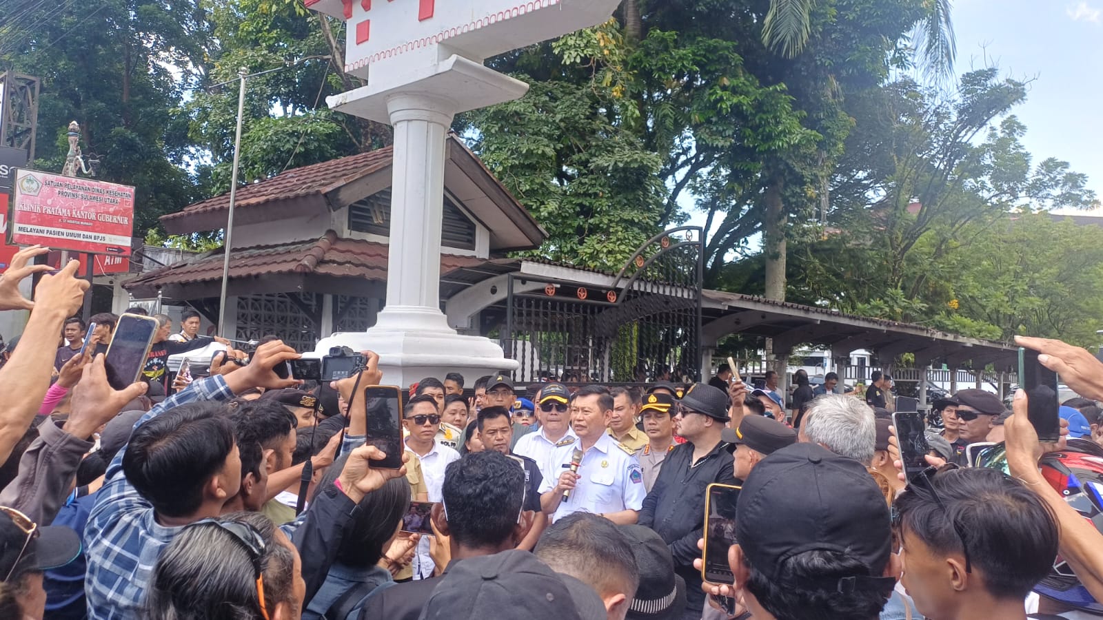 Di depan pendemo, Wakil Gubernur J.Victor Mailangkay menyampaikan, kehadiran para massa aksi disini sangat tertib dan tak merusak fasilitas yang berada dikantor tersebut, Setelah pertemuan dengan pewakilan masa aksi serta menyampaikan aspirasinya, bapak Gubernur dan saya melayani kehadiran para bapak ibu disini.