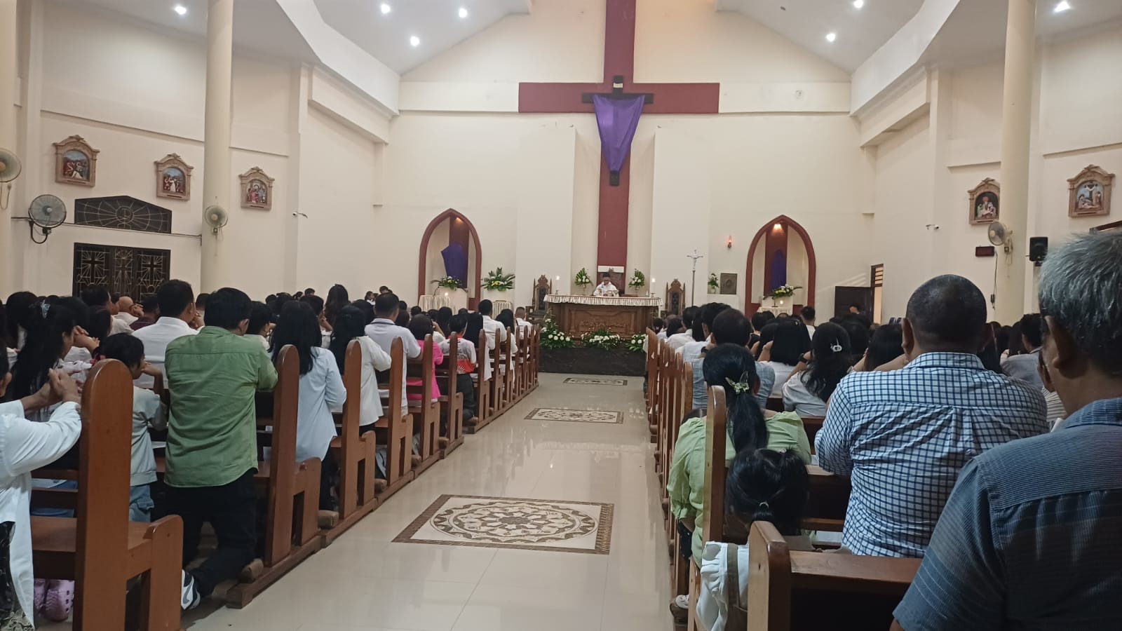 Misa kamis putih dipimpin oleh Pastor Marson Pungis Pr.dengan mengambil tema “Kasih Putih” Mazmur 116: 1–19.Dalam Khotbahnya/ Pastor mengajak keteladanan yesus yang mengasihi murid-muridnya walaupun ada seorang muridnya yang menghianati yesus.