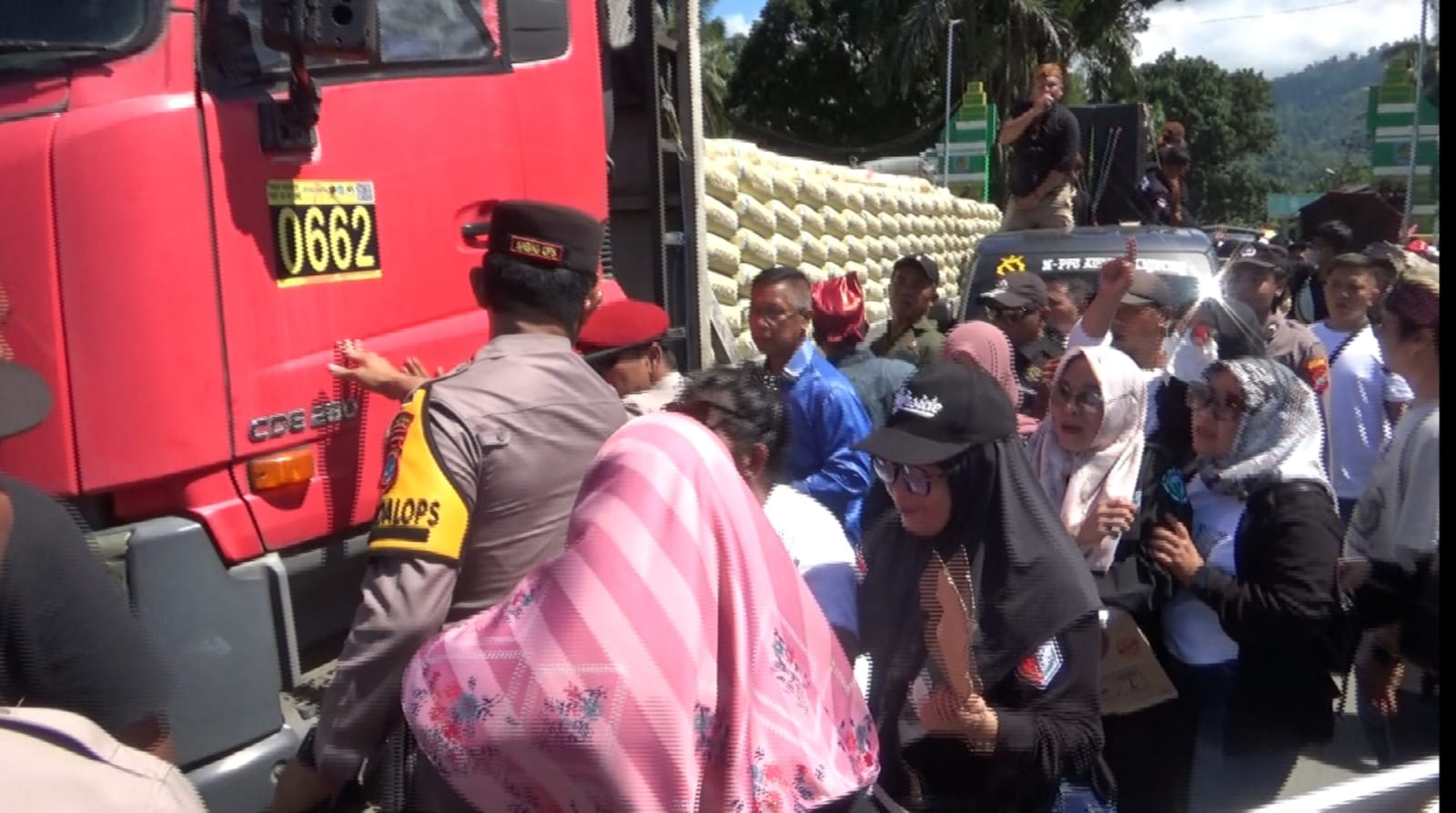 Namun aksi tersebut ricuh saat petugas mengambil sebuah gelon yang berisi BBM jenis Pertaliat.Tak hanya itu para masa aksi mencoba memblokade jalan trans sulawesi, tetapi terjadi saling dorong dengan petugas keamanan.