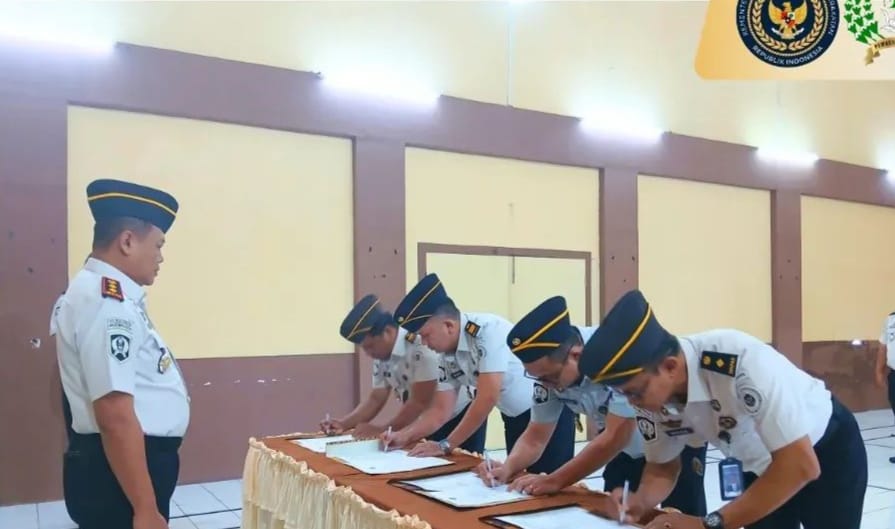 Penandatanganan kinerja sejumlah pejabat di Lapas kelas IIB Tondano disaksikan langsung oleh Kepala Lembaga Pemasyarakatan (Kalapas) Tondano, Akhmad Sobirin.
