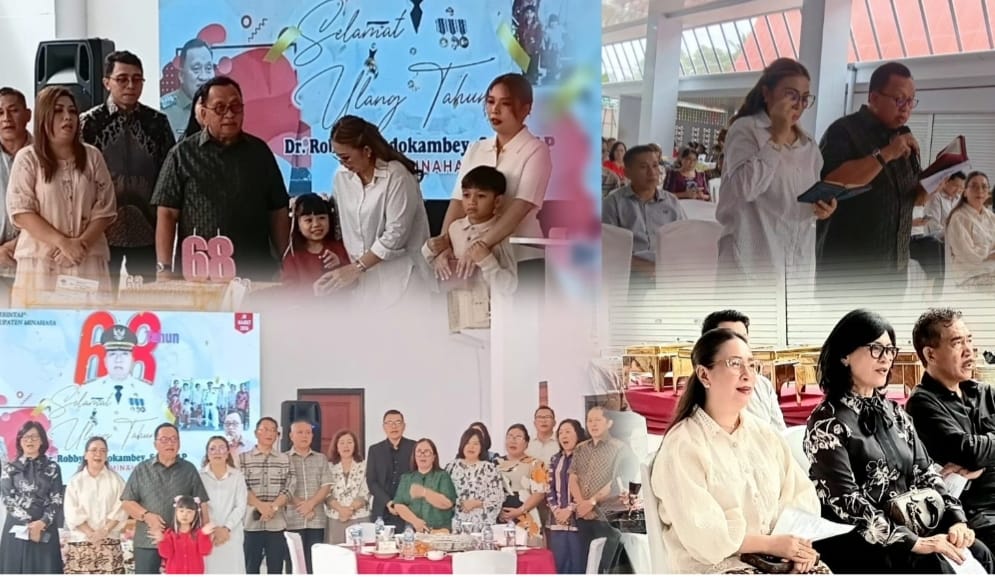 Suasana kekeluargaan Keluarga Besar Dondokambey Lengkong mewarnai Ibadah Syukur Hut-ke 68 Bupati Minahasa Dr. Robby Dondokambey. Ibadah Syukur tersebut berlangsung di Rumah Dinas Bupati Minahasa, Minggu (1/3/2026).